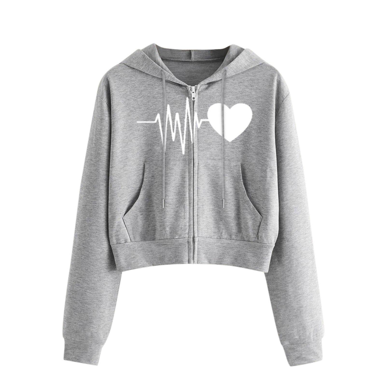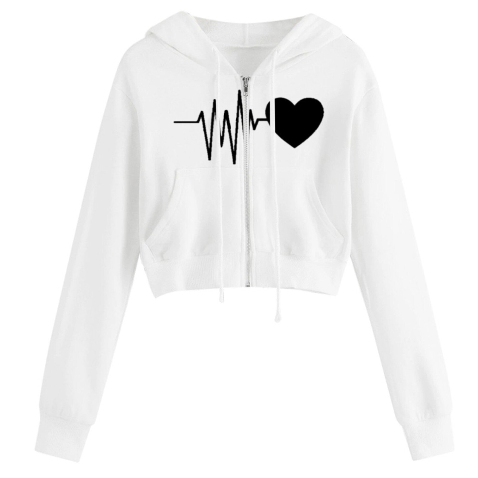 Frauen Hoodies Zipper Tasche Kurze Sweatshirt Casual Sport Pullover EKG Liebe Druck Lange Hülse Mit Kapuze Pullover Jogging Shirt