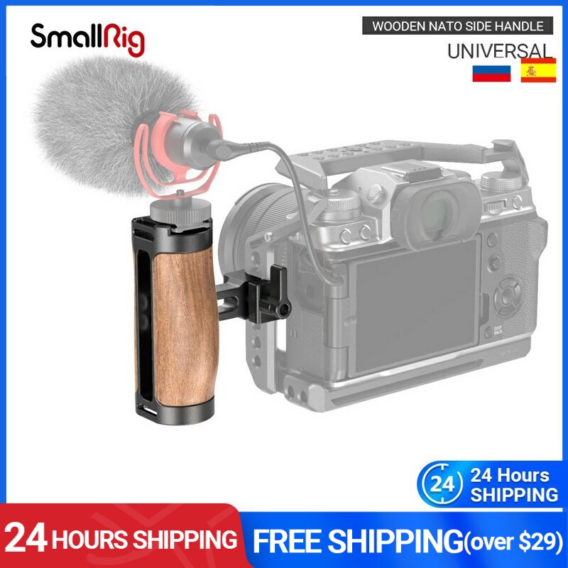 Smallrig holz-nato-seitengriff mit cold shoe-halterung für dslr-kamerakäfig, videoaufnahmen, fotografie, diy-holzhandgriff - 2915