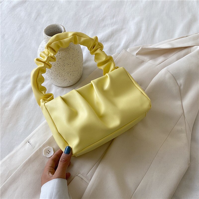 Weibliche sommerwolken-einkaufstasche, gelbe weiche lederfliege, umhängetasche, umhängetasche, falthandtasche, damen-einzeltasche